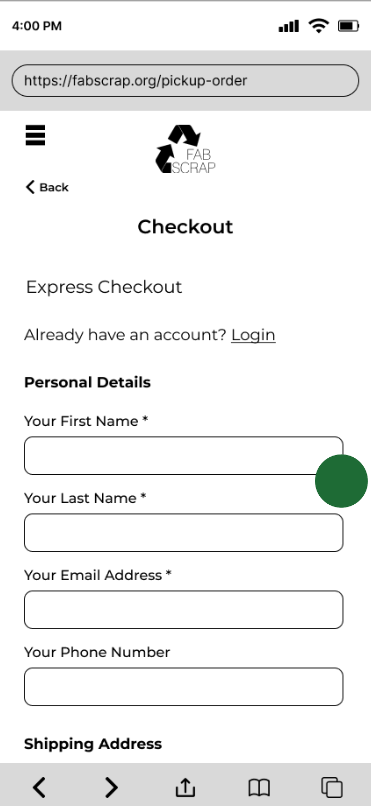 Users interested in recycling their fabric need a clearly laid-out process that is accessible to anyone looking to submit a pickup request. We will know this to be true when we see how many users successfully submit a pickup request without needing to contact the FABSCRAP support team for assistance.